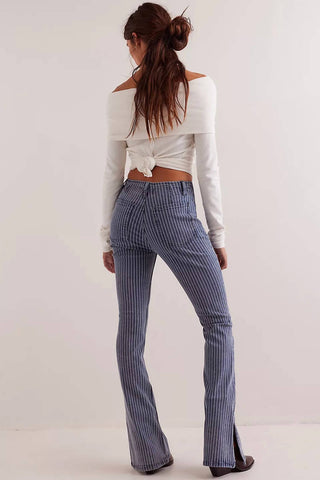 Free People - Women's Level Up Stripe Slim Flare Jeans