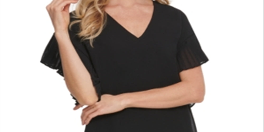 Vestido Dkny com manga plissada e decote em V para mulheres - Roupas femininas - Vestidos ()