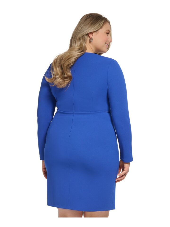 Vestido feminino DKNY com decote em V e manga comprida, torcido na frente, azul, tamanho 18W