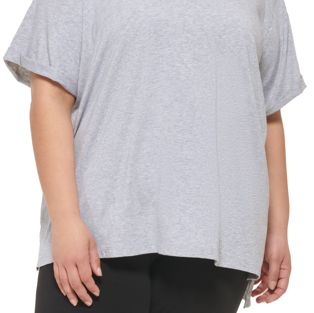 Corte para fácil sobreposição e conforto ideal | esta camiseta plus size da DKNY ilumina seu guarda-roupa de treino com uma estampa chique de logotipo ombré. | Gola redonda | Algodão/modal/elastano | Lavável à máquina | Importado