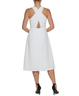 Vestido midi feminino DKNY com costas cruzadas, branco, tamanho 2