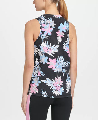Camiseta regata feminina DKNY Sport com estampa de logotipo, preta, tamanho médio