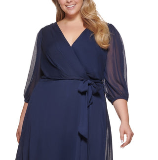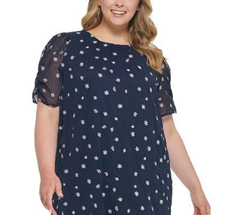 Vestido midi bordado DKNY feminino, azul, tamanho 22W