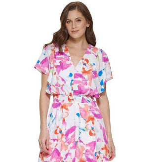 Vestido feminino DKNY com decote em V e bolinhas, azul, tamanho pequeno e pequeno