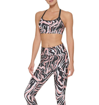 Sutiã esportivo feminino DKNY com estampa de mármore, preto