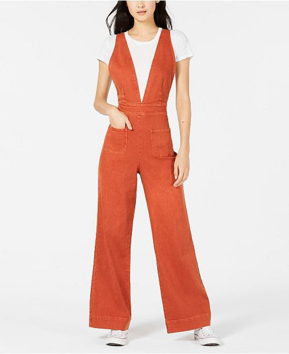 Macacão jeans colorido de perna larga Dollhouse Junior, marrom, tamanho 7
