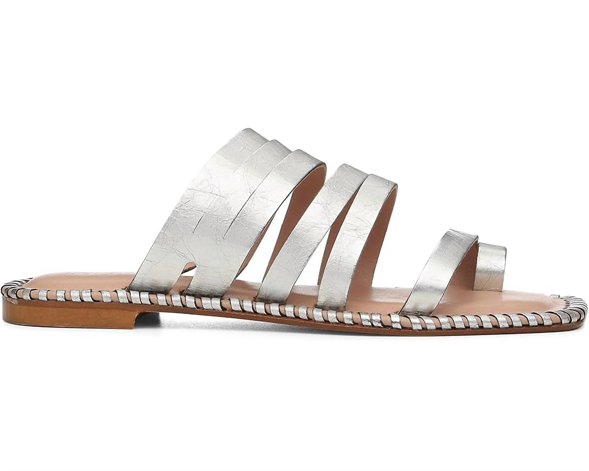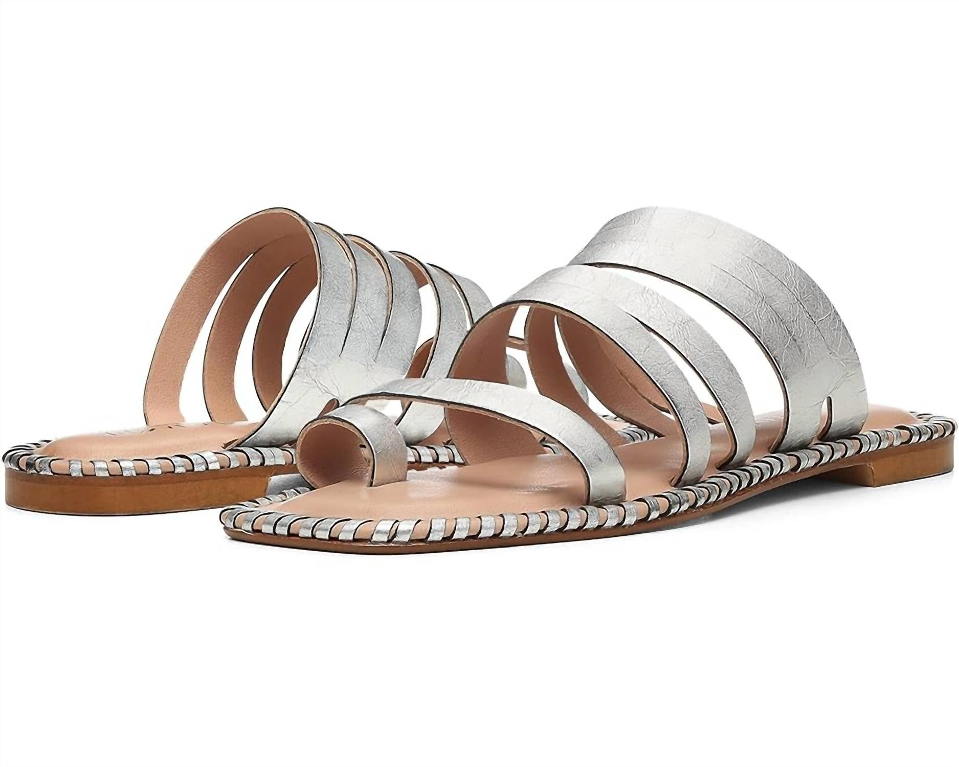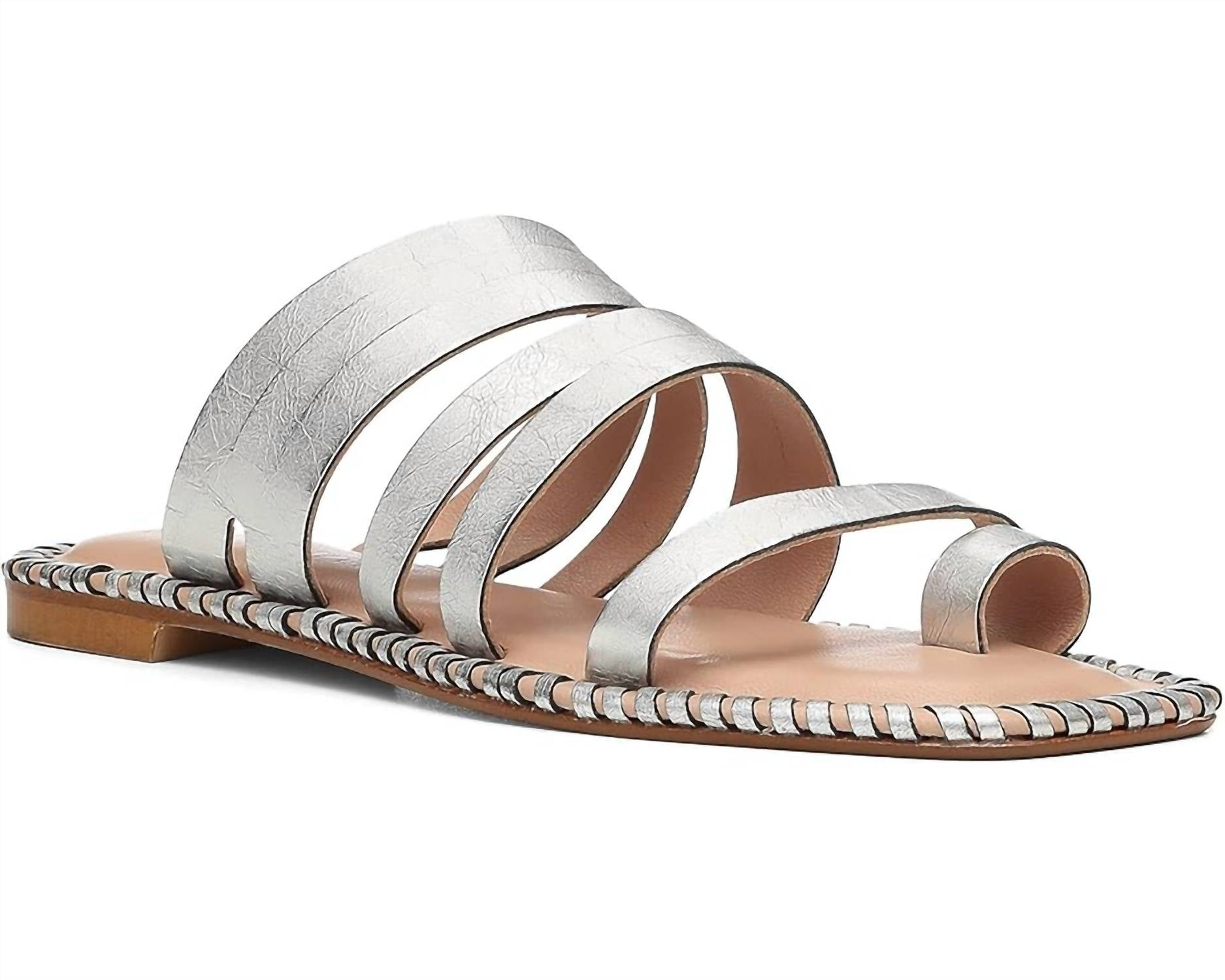 Esta sandália vai levar você do brunch ao jantar e a tudo o mais. Entre na elegância com a Sandália Emmaline da Donald Pliner, confeccionada em prata para um estilo sofisticado. Estas sandálias ostentam tiras superiores em couro metálico envelhecido com um anel de bico chamativo, lindamente complementado por detalhes em pesponto na palmilha. Projetadas para o conforto, elas apresentam um estilo slip-on com palmilha de couro acolchoada com espuma viscoelástica e solado de couro polido. Feita na Itália, a Sandália Emmaline garante qualidade e um toque moderno com seu bico quadrado aberto e salto plano com suporte.