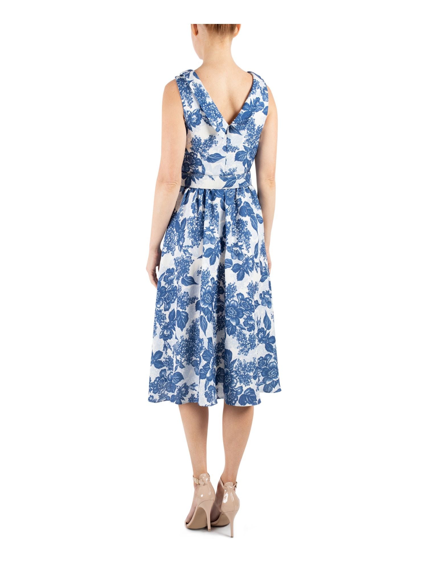Design plissado | Cintura com cinto | Fechamento com zíper | Interior forrado | Estilo gola alta | Estampa floral | Sem mangas | Comprimento abaixo do joelho | Vestido para noite + comprimento flare | Tamanho 14
