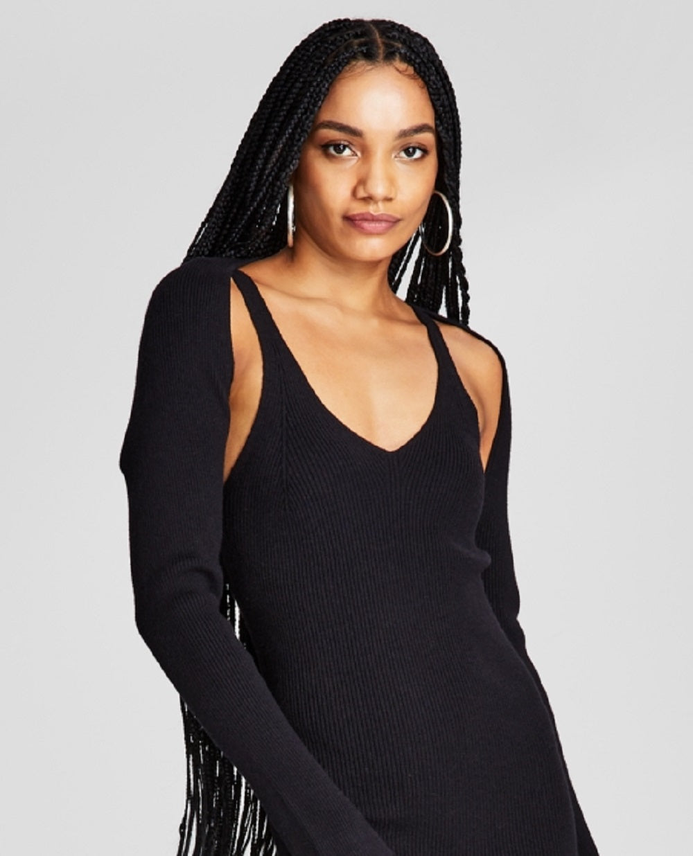 Fique elegante e chique com este vestido justo e justo da And Now This | um design de malha canelada sem mangas combinado com um encolher de ombros coordenado para um estilo fácil