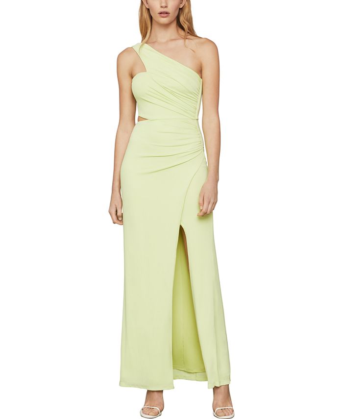BCBGMAXAZRIA Vestido de noite feminino com um ombro só e recorte verde, tamanho médio