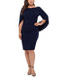 Uma silhueta escultural que destaca suas curvas | Este vestido plus size justo da Betsy & Adam apresenta mangas drapeadas que se conectam nas costas. | Fecho de zíper oculto nas costas | Crepe Scuba; elástico e com suporte | Forrado | Mangas 3/4 drapeadas tipo capa que se conectam nas costas | Ajustado no peito