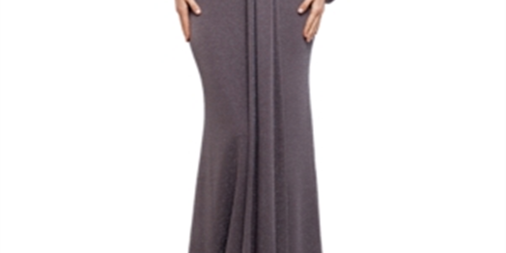 Vestido de malha metálica feminino Betsy & Adam, manga comprida, cinza, tamanho 8