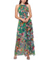 Vestido longo floral com babados Betsy & Adam feminino, verde, tamanho 6, pequeno