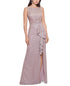 O glitter brilha de todos os ângulos neste vestido sem mangas da Betsy & Adam | uma beleza com babados na frente e fenda na altura da coxa. | Fecho de zíper nas costas | Babados na frente com fenda na bainha | O glitter pode soltar durante o uso | Vestido formal longo | Decote canoa