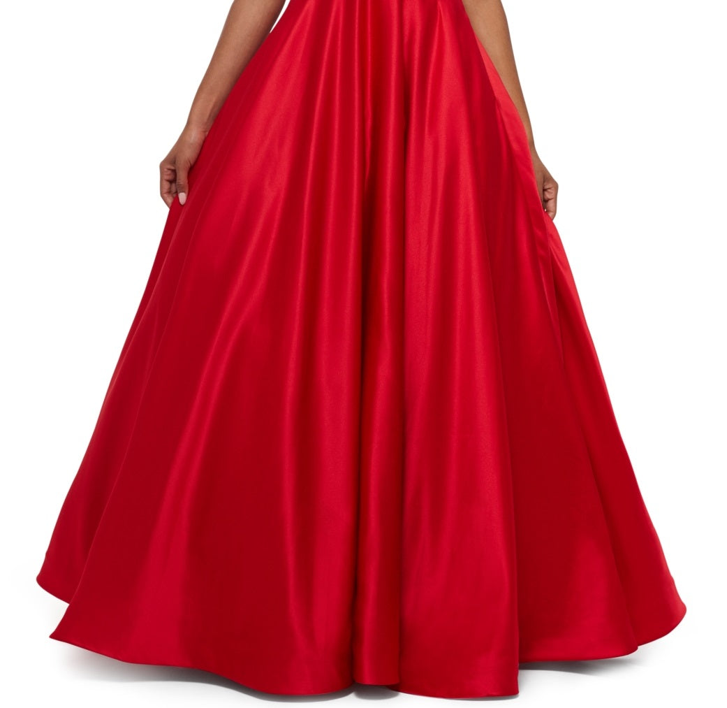 Vestido de baile feminino Betsy & Adam, de cetim, com decote em V, vermelho, tamanho 2
