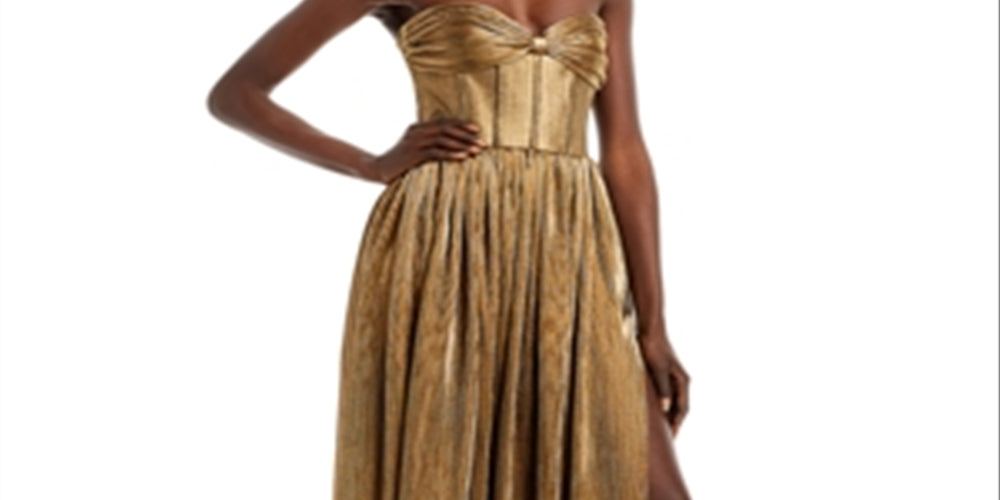 Vestido sem alças Florence metálico feminino Bronx and Banco, amarelo, tamanho X-S