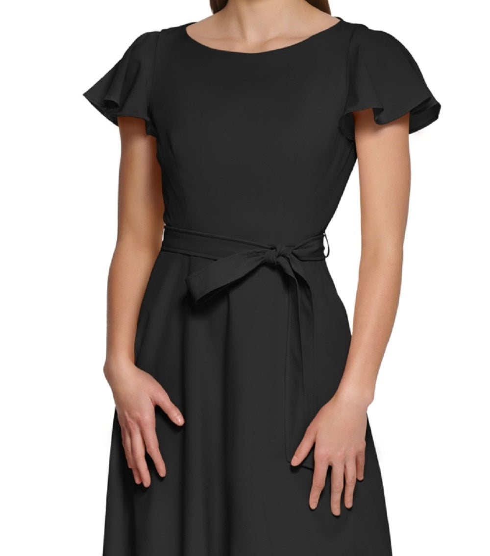 Vestido Calvin Klein Feminino Manga Flutter Fit & Flare Preto Tamanho 4