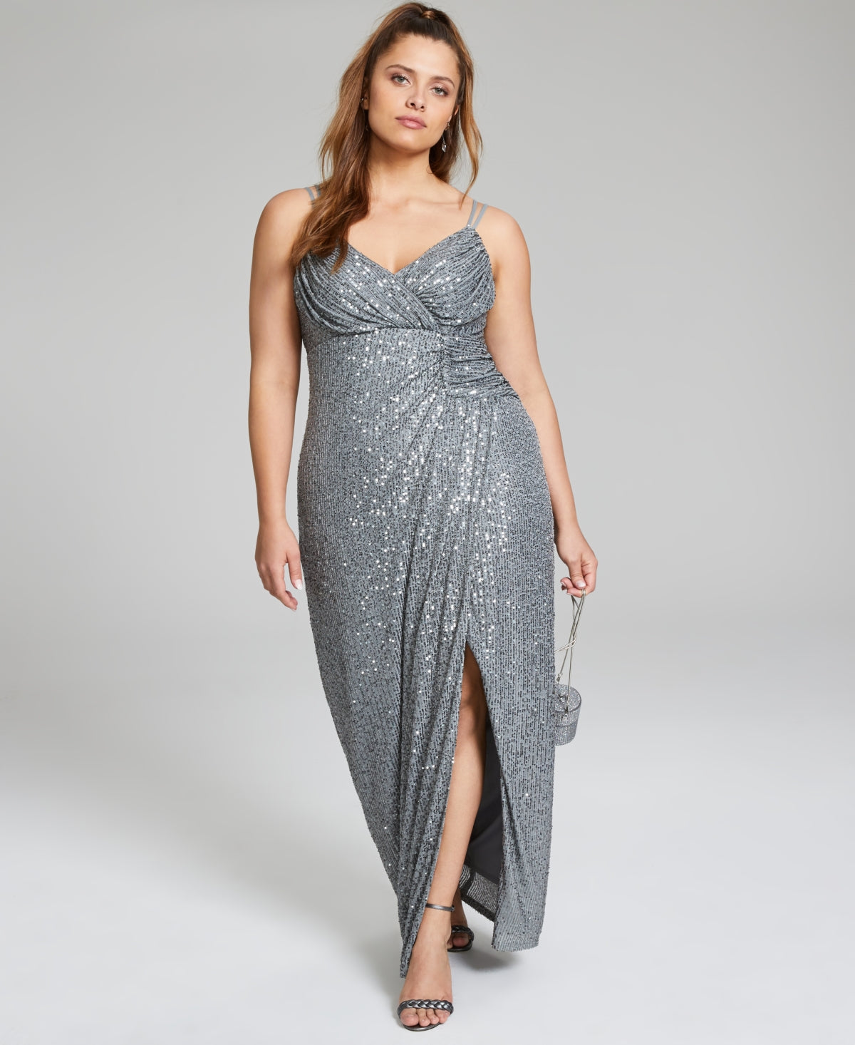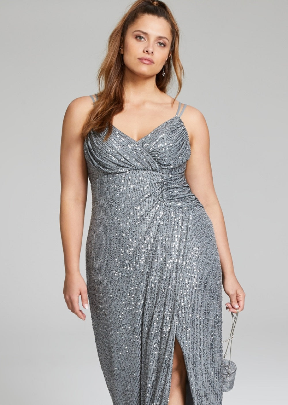 Aposte neste vestido plus size da City Studios | uma belezura sem mangas com acabamento metálico brilhante |