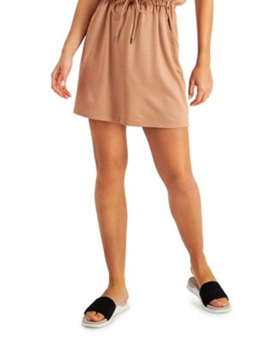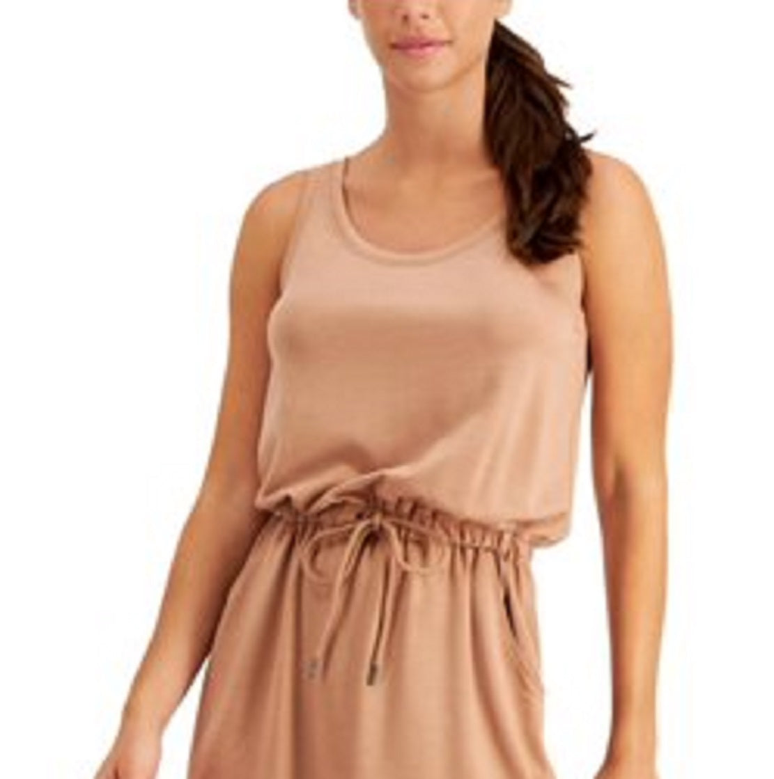 ID Ideology Vestido curto feminino com bolso elástico e cordão na cintura, sem mangas, decote redondo, marrom, tamanho pequeno