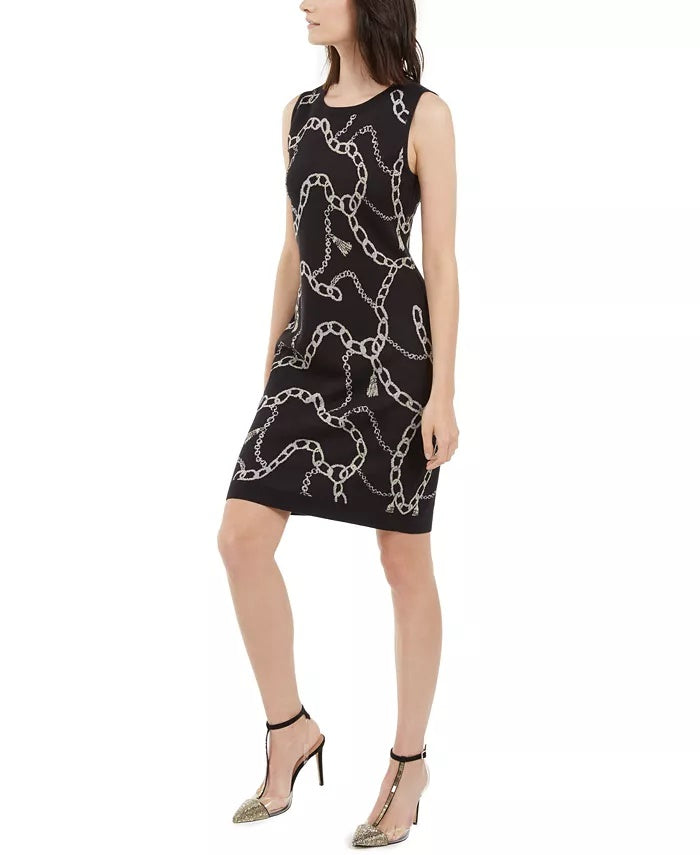 Vestido suéter feminino com estampa de corrente da INC International Concepts, preto, tamanho extragrande