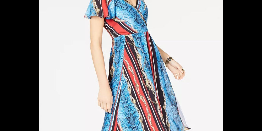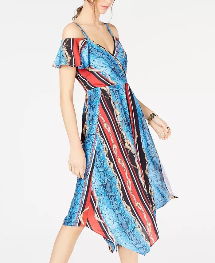Vestido feminino com sobrepeliz e ombros descobertos da INC International Concepts, azul, vários tamanhos, 14