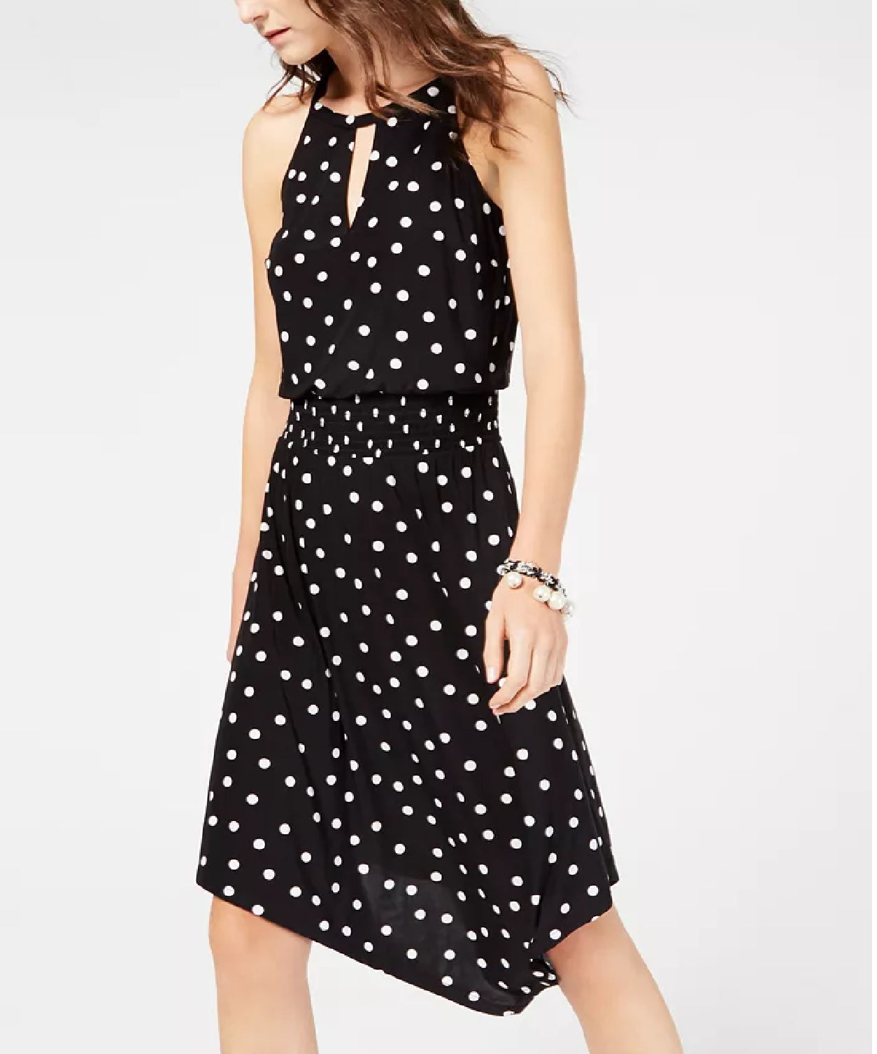 Vestido feminino sem mangas com bainha de lenço estampado, preto, tamanho grande, da INC International Concepts