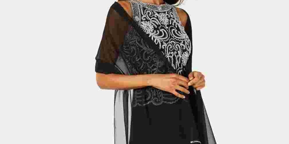 Aproximadamente 140 cm de comprimento a partir do centro das costas; varia aproximadamente 0,6 cm entre os tamanhos | Decote redondo | Zíper traseiro oculto com fecho de colchete
