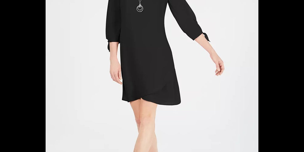 Vestido feminino JM Collection Petite com mangas amarradas e colar, tamanho pequeno, preto