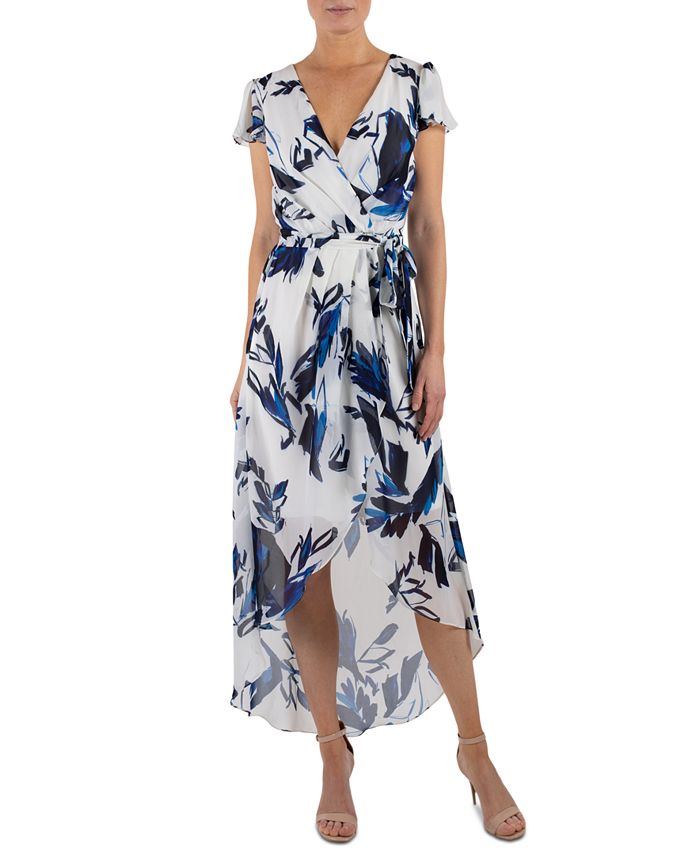 Aposte em uma sofisticação ousada com este vestido longo Julia Jordan. Com uma estampa vibrante, o vestido com cinto flui com bainha alta e baixa. | Aproximadamente 52-3/4 de comprimento do centro do pescoço até a bainha. O comprimento é baseado no tamanho 6 e varia 1/8 entre os tamanhos. | Decote em V sobrepeliz; silhueta longa | Fecho de zíper lateral oculto | Cinto removível de tecido combinando na cintura; saia tulipa; bainha alta e baixa.