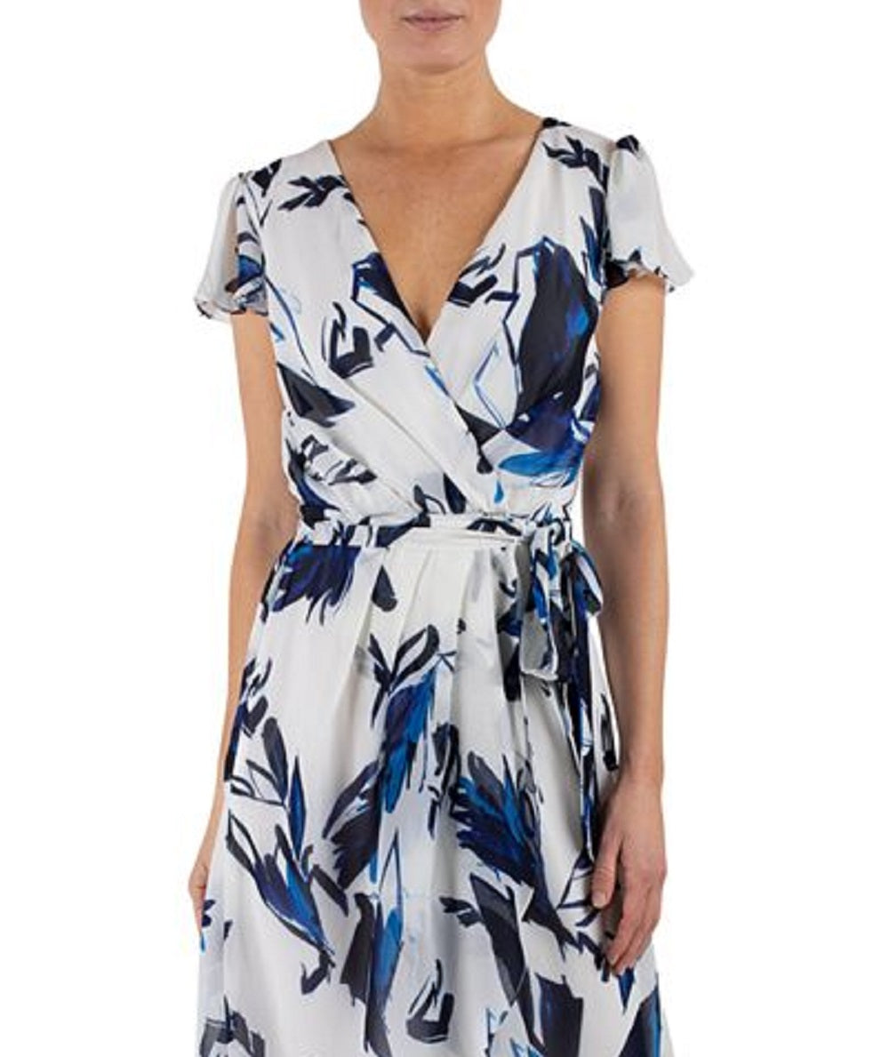 Vestido longo estampado Julia Jordan feminino, azul, tamanho 14