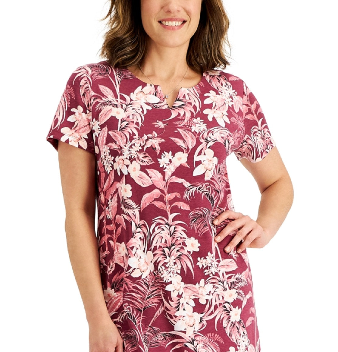 Flores suaves realçam folhas ondulantes | trazendo um estilo inspirado na ilha para este vestido fácil de usar de Karen Scott
