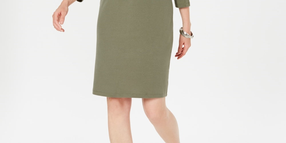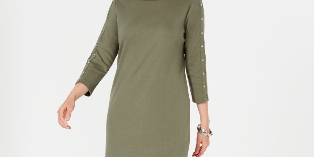 Comprimento aproximado de 36, do centro das costas até a bainha | Projetado para se ajustar e valorizar pessoas de 1,62 m ou menos | Decote canoa | Estilo pulôver | Mangas 3/4 | Com tachas no decote e nas mangas