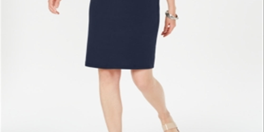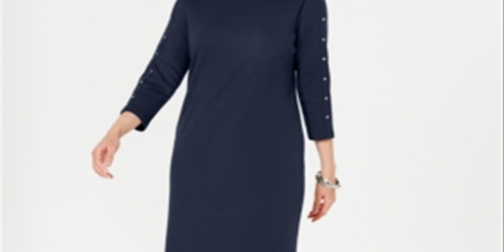 Vestido feminino Karen Scott com tachas, manga 3/4, decote canoa, acima do joelho, azul, tamanho X-S