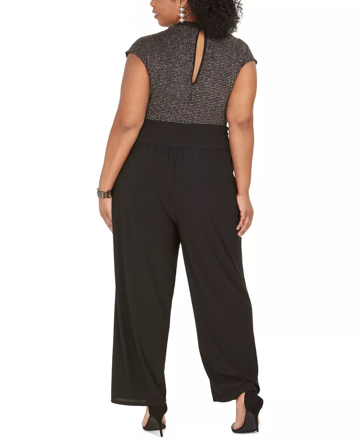 Macacão feminino Love Squared Plus com decote em V e amarração, preto, tamanho 1X
