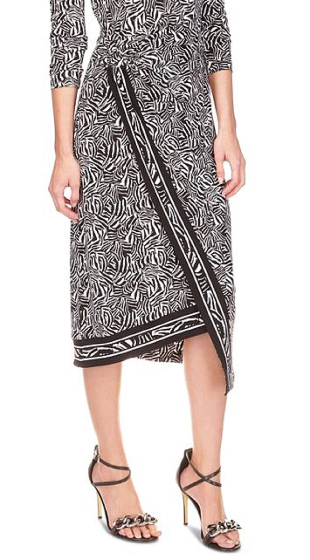 Vestido midi assimétrico com estampa de zebra feminino Michael Kors, preto, tamanho pequeno