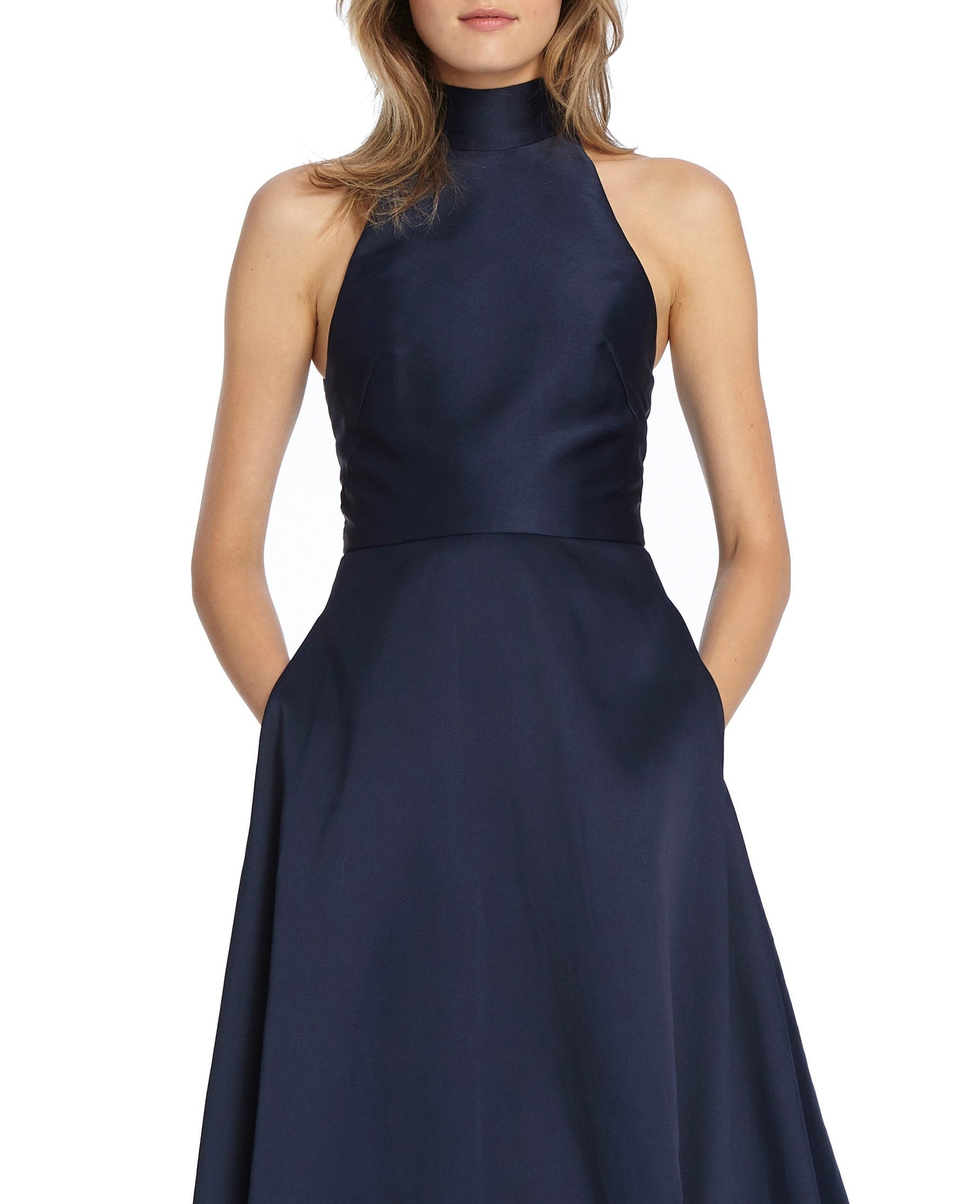 Vestido de noite feminino Ml Monique Lhuiller com gola alta, azul, tamanho 4