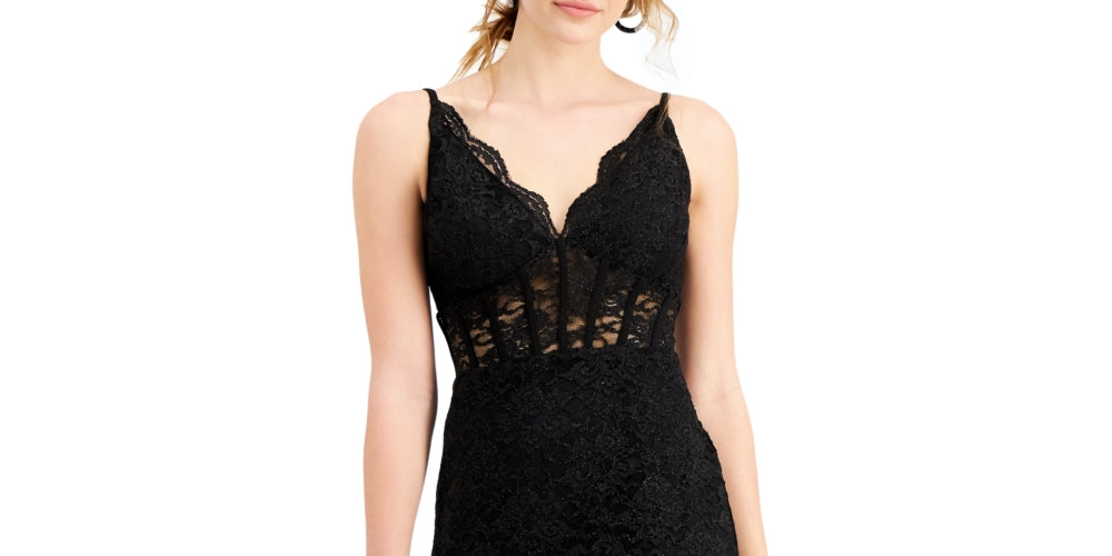Vestido sem mangas com corpete de renda feminino Morgan & Co., preto, tamanho 15