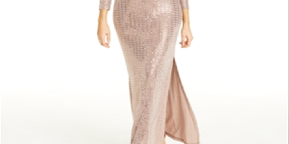 Vestido de noite feminino Morgan & Co Plus com bolinhas metálicas, marrom, tamanho 3X