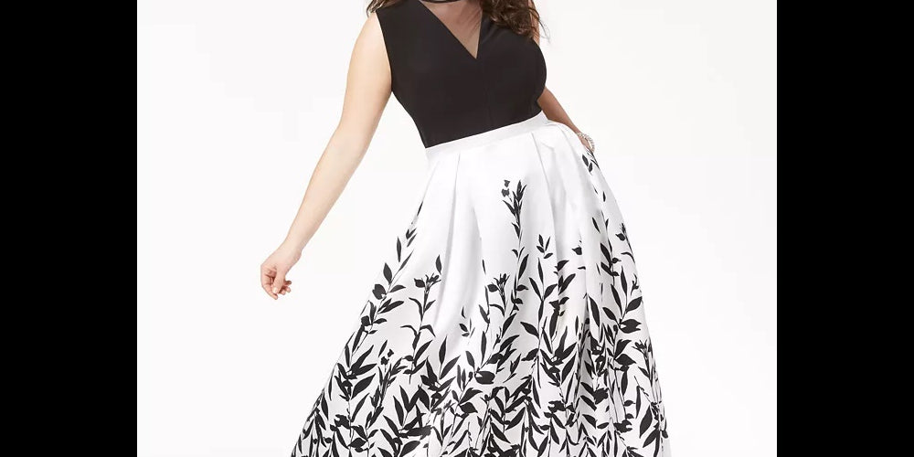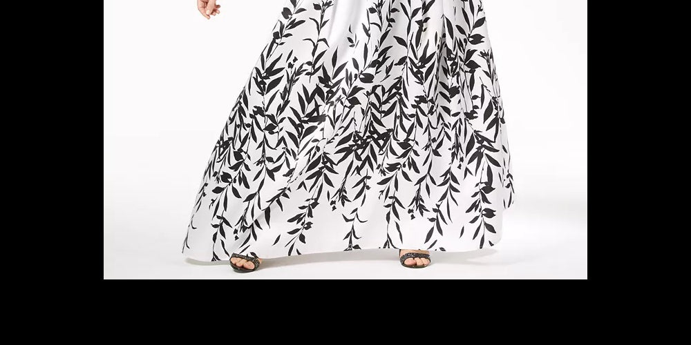 Vestido longo estampado plus size da Morgan & Co para mulheres, preto e branco, tamanho 22W
