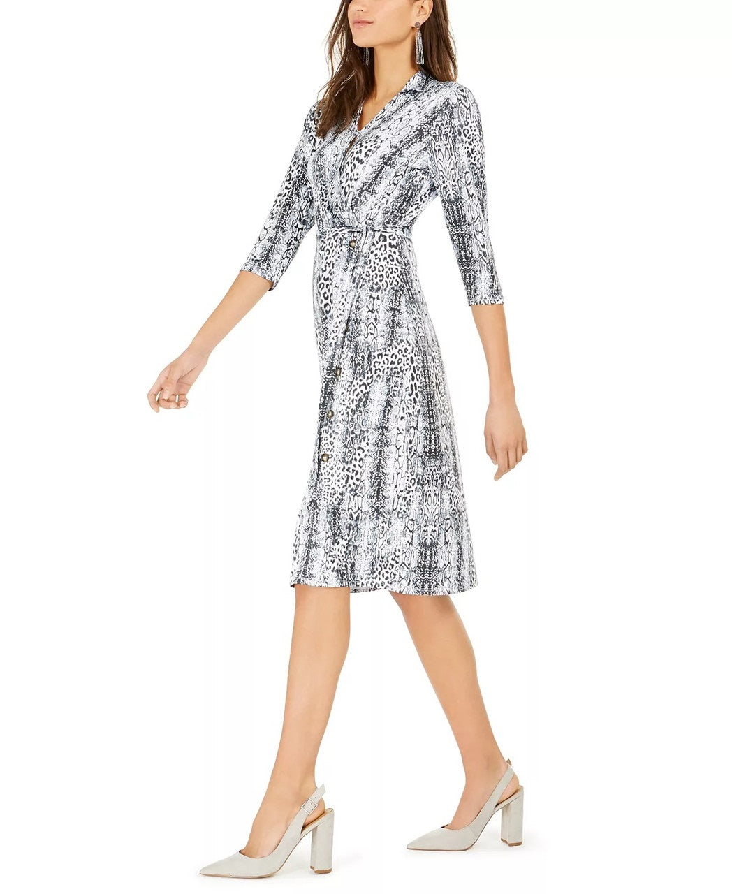 Vestido-camisa feminino NY Collection com estampa animal, branco, tamanho pequeno GG