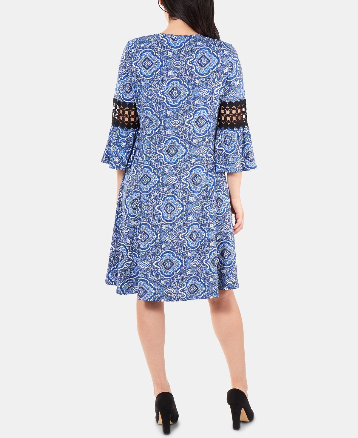 O vestido petite da NY Collection é uma graça, com uma silhueta despojada e mangas sino românticas. A renda de crochê circundando as mangas finaliza o look. | Projetado para vestir e valorizar pessoas de 1,62 m ou menos | Decote redondo | Estilo pulôver | Mangas sino 3/4 | Inserções de renda de crochê na parte superior do braço | Poliéster/elastano
