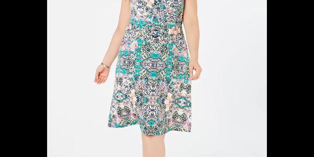 Comprimento aproximado de 39 | Decote em V; Silhueta ajustada e evasê | Estilo pulôver | Anel com cinto na cintura | Sem forro | Poliéster/elastano
