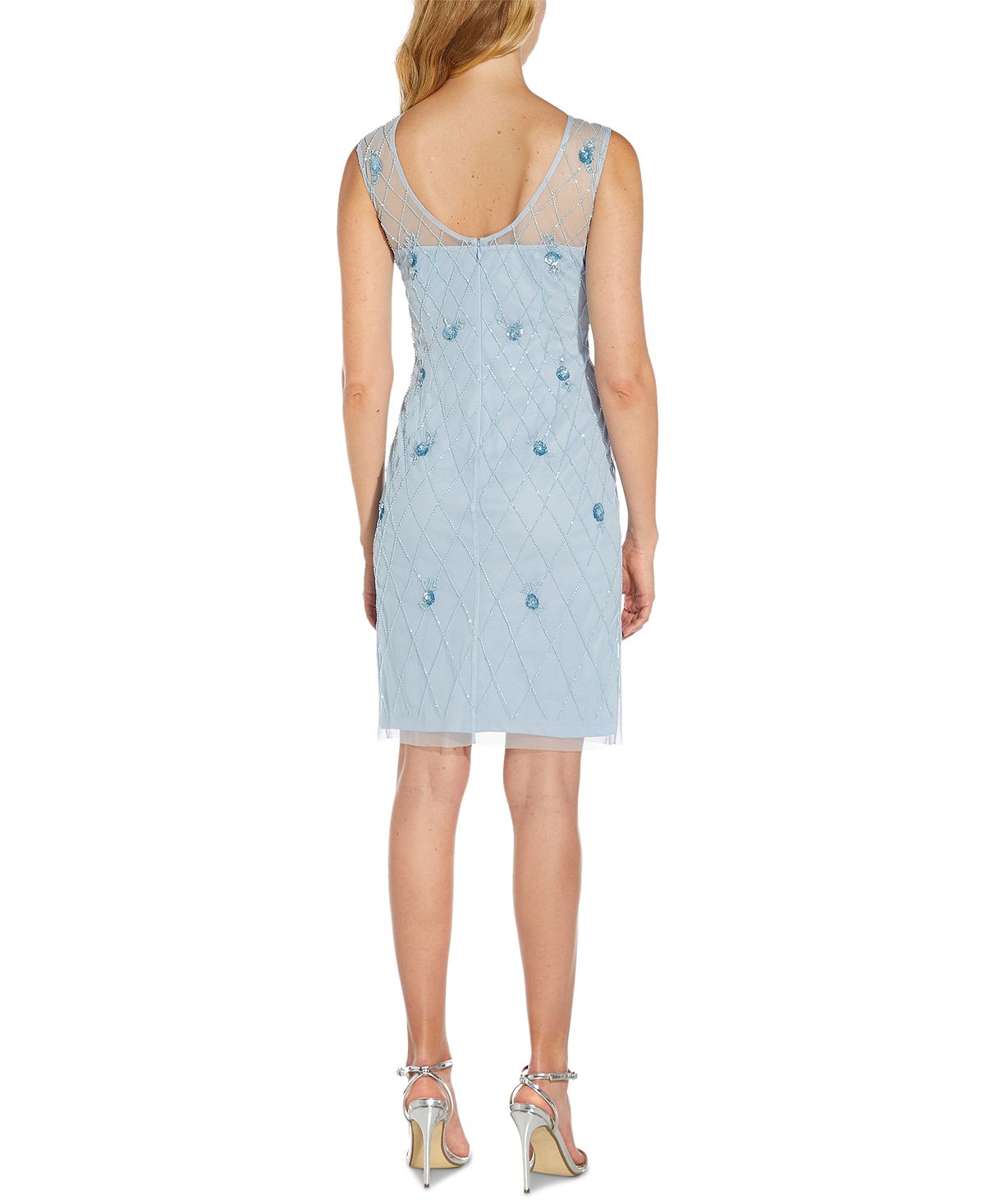 Aprecie o vestido de festa perfeito. Este vestido tubinho cintilante da Adrianna Papell chama a atenção com seus detalhes transparentes e toques de brilho. | Comprimento aproximado de 39 cm, do ombro à barra. O comprimento varia 1/4 entre os tamanhos | Ajuste sob medida no peito, cintura e quadris; ajusta-se perfeitamente ao corpo | Decote canoa; Corte tubinho | Fecho de zíper nas costas