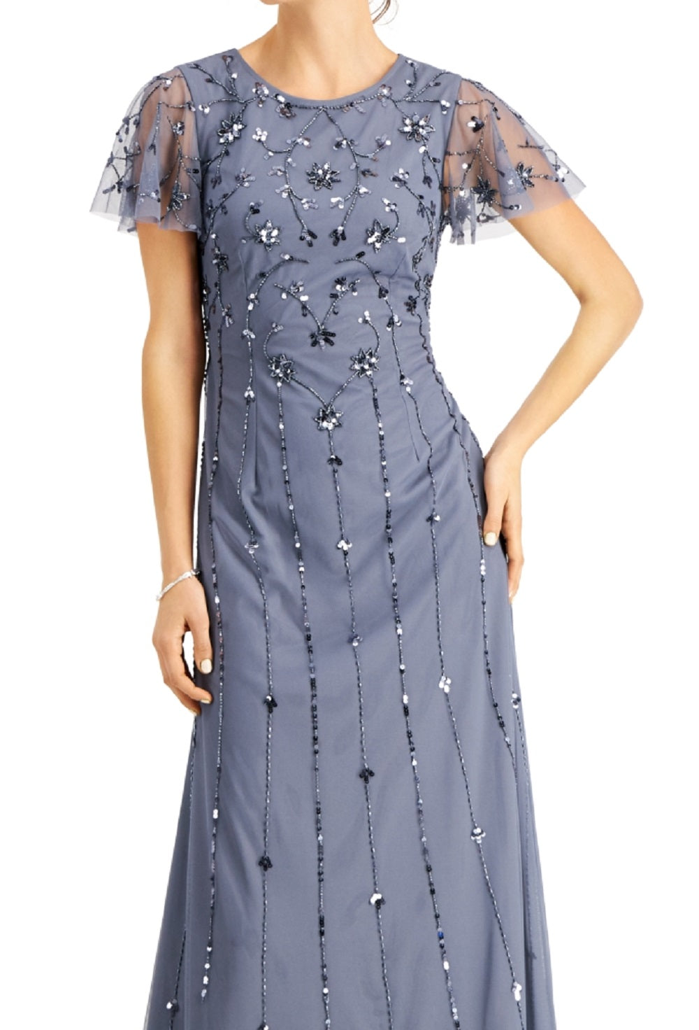 Verdadeiramente elegante | este vestido brilha com delicados detalhes embelezados | enquanto as mangas transparentes e esvoaçantes adicionam um toque de glamour sonhador do Papell Studio by Adrianna Papell. | Todo embelezado | Importado | Vestido formal longo | Fecho de zíper nas costas