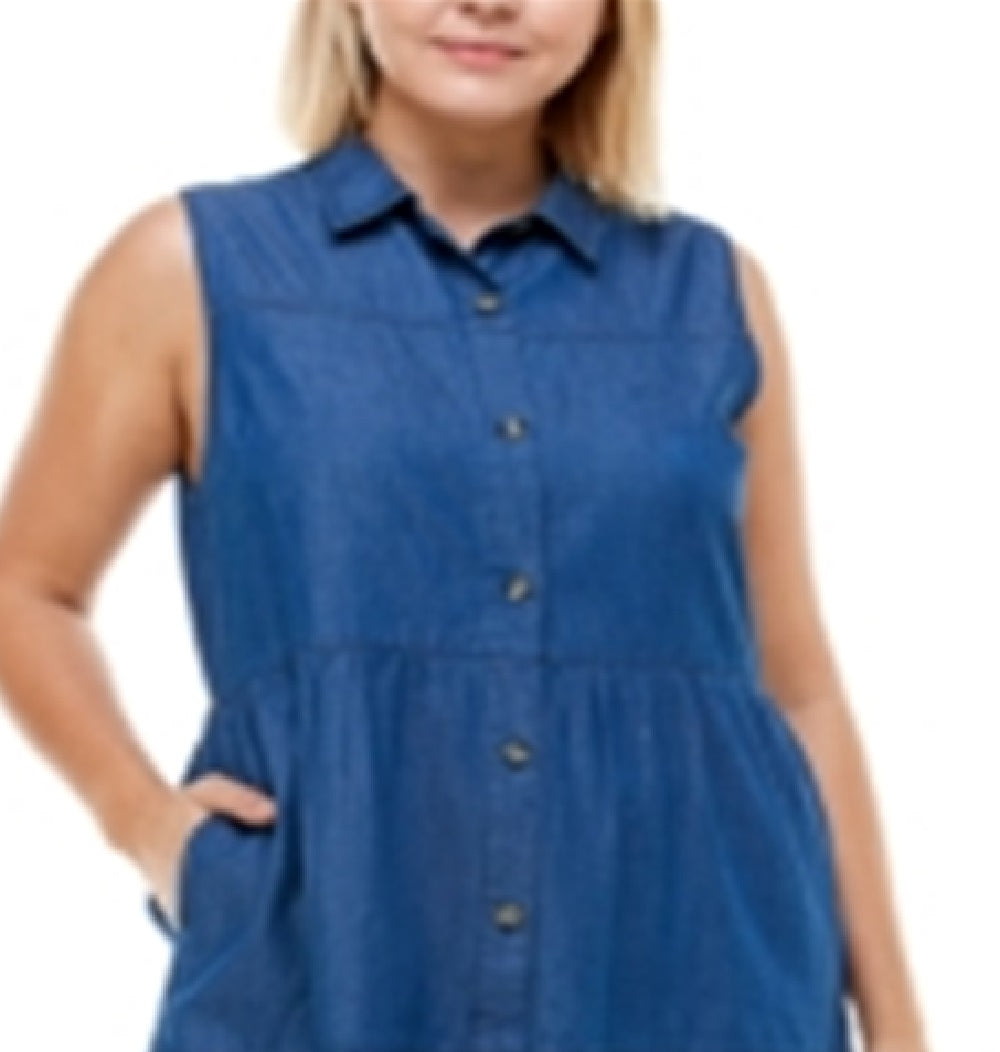 Uma versão descontraída do modelo camisa | Este modelo plus size com botões da Planet Gold apresenta camadas amplas para um visual descontraído e confortável. | Comprimento aproximado de 38, do centro das costas até a bainha. O comprimento varia em 1/2 entre os tamanhos | Tamanho real; peça seu tamanho normal | Ajustado no peito e na cintura; saia estruturada em corte A que se ajusta ligeiramente sobre os quadris | Algodão; Tecido fresco; pouquíssima elasticidade | Gola ampla com decote em V; Silhueta em corte A