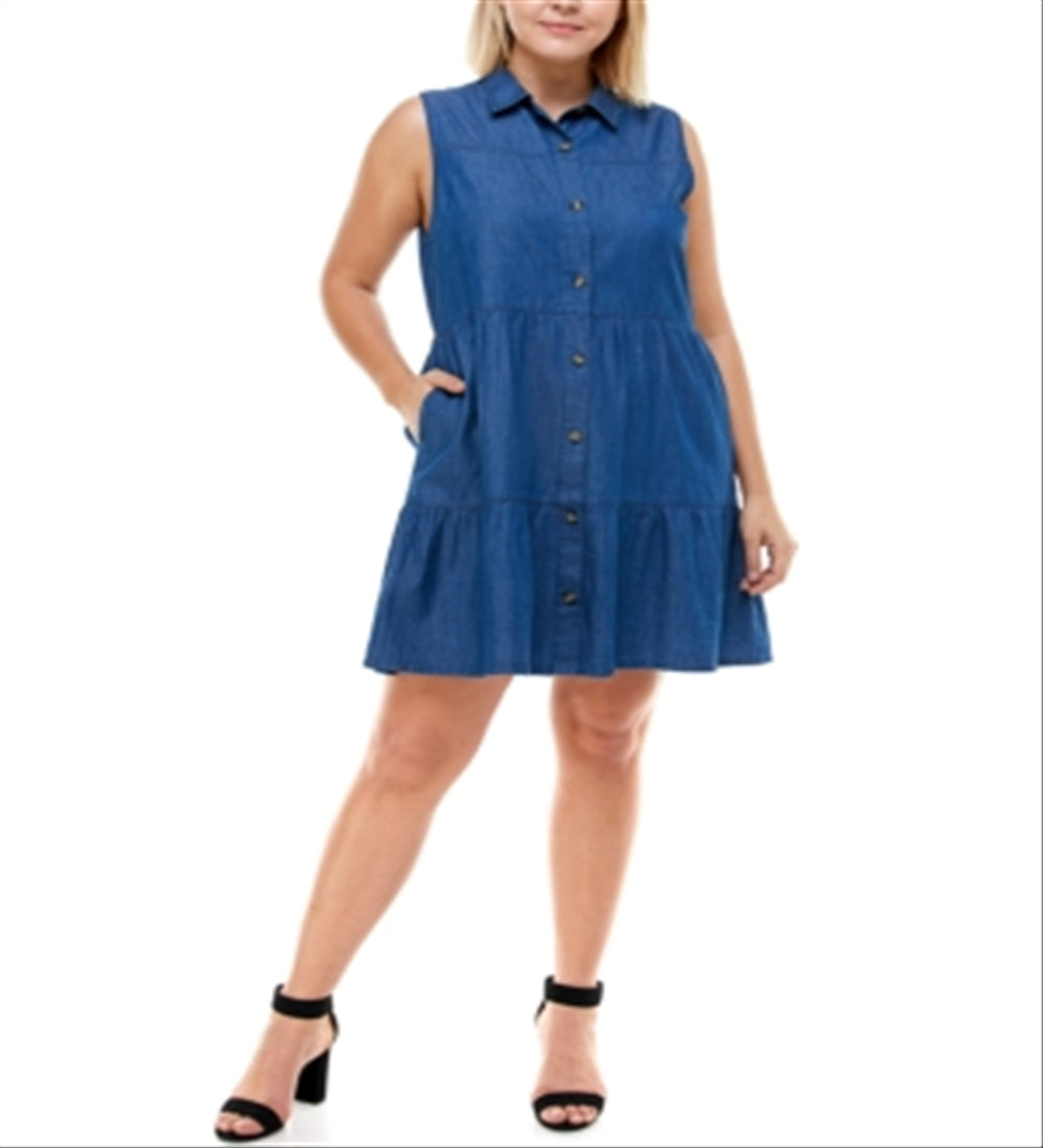Vestido-camisa jeans de algodão plus size Planet Gold feminino, azul, tamanho 1X
