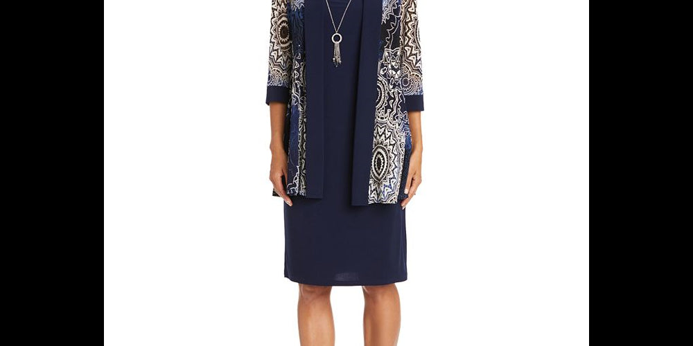 Prepare-se para ser um destaque estiloso com a jaqueta estampada petite da R&M Richards e o vestido combinando, realçados por um colar removível. Comprimento aproximado de 86 cm, do centro do pescoço até a bainha. O comprimento é baseado no tamanho 38P e varia de 1/4 entre os tamanhos. Projetado para se ajustar e valorizar pessoas de 1,62 m ou menos. Jaqueta; gola xale | frente aberta.