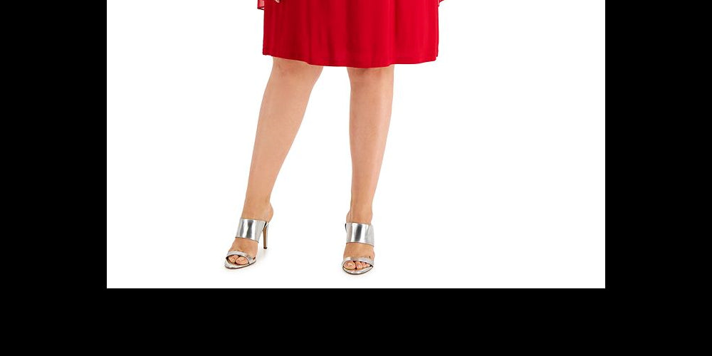 R & M Richards dá um toque arejado a este lindo vestido plus size com mangas esvoaçantes de chiffon e decote com strass brilhantes