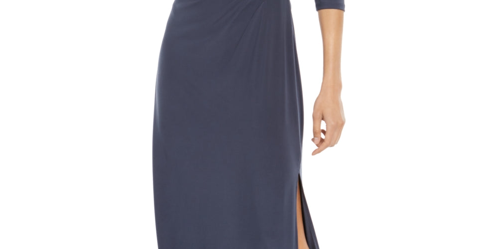 Vestido feminino R & M Richards com ombros descobertos, cinza, tamanho 8