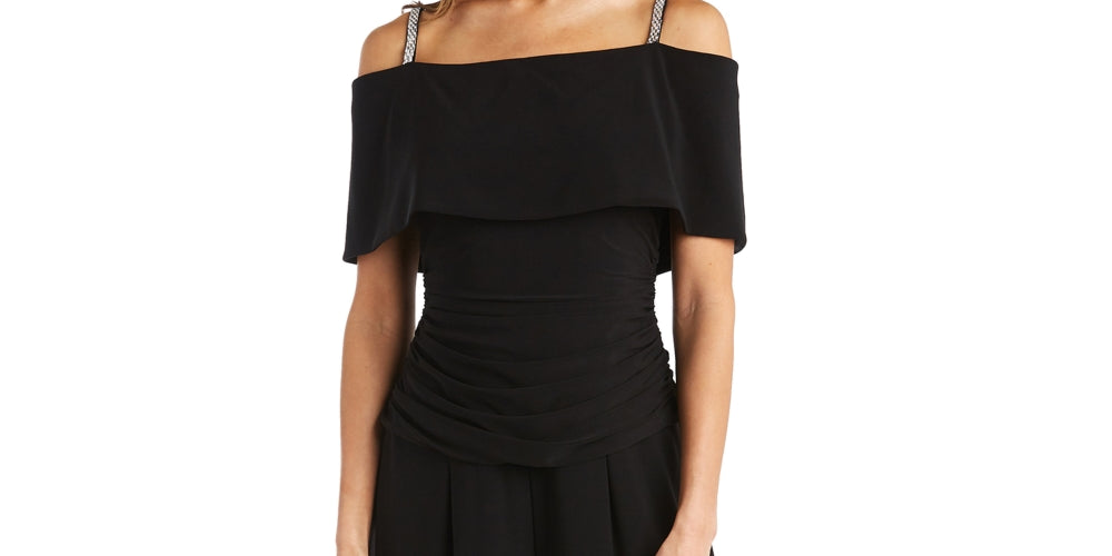 Macacão feminino R & M Richards com ombros descobertos, preto, tamanho 8, pequeno